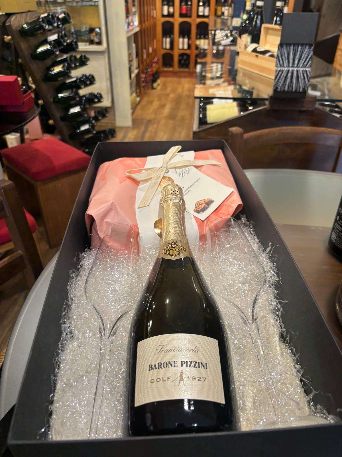Box Regalo con 1 bottiglia di metodo classico Barone Pizzini Golf chardonnay 100%
